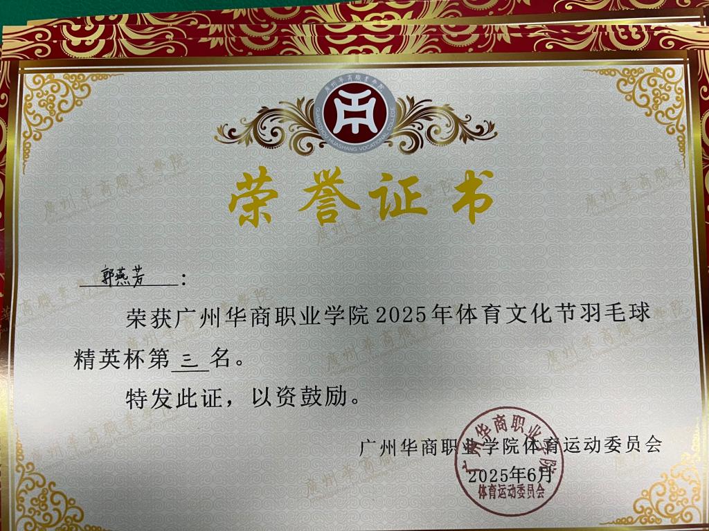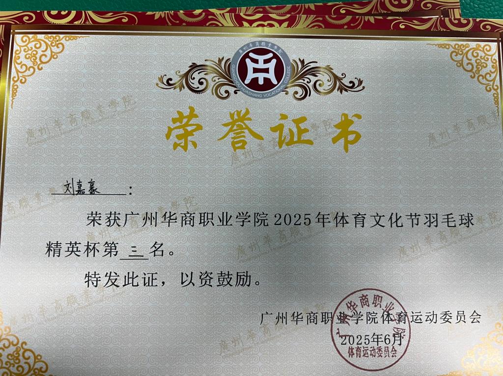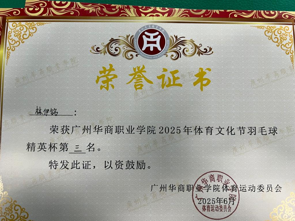 深入贯彻落实“健康中国”战略,积极响应2025年“体重管理年”号召,营造全民参与、共同锻炼的校园体育氛围,2025年6月11日--17日,智能制造与汽车学院学子参与广州华商职业学院举办第三届体育文化节羽毛球精英杯比赛。此次活动以“一起动起来!”为主题,倡导科学运动、健康生活,激发运动热情。