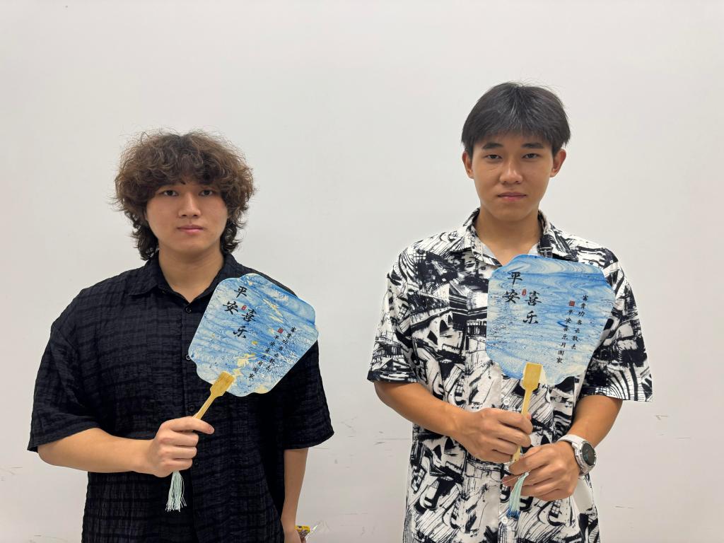 稍晚些,走入学思苑,各式各样的漆扇映入眼帘。同学们将作品铺在桌子上,利用室内通风条件自然干燥。活动结束后,不少人带着作品在书院合影,扇面反光与笑脸相映,成了当晚最生动的文化剪影。