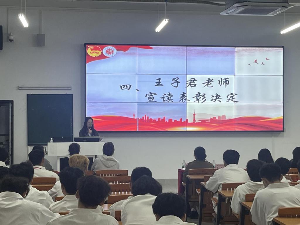 王子君老师以清晰而有力的声音宣读了表彰决定,对优秀个人及集体给予了高度认可与赞扬。大会进入庄重而热烈的表彰环节。为树立榜样标杆、激发奋进动力,经学院综合评议、严格筛选,最终确定表彰名单。老师们依次为在校园文化建设中积极参与、主动奉献,以实际行动丰富校园氛围的“校园文化积极分子”;以及在“广汉篮球杯”赛事中不畏强手、奋勇拼搏,凭借默契配合与顽强斗志为学院争光的获奖队员颁发荣誉证书与奖品。闪光灯下,获奖同学脸上洋溢着自豪的笑容,台下响起经久不息的掌声,既是对获奖者的诚挚祝贺,也是对全体学子勇于挑战自我、积极投身校园建设的肯定与鼓励。获奖代表在发言中表示,这份荣誉不仅是个人努力的见证,更承载着学院的信任与期望,未来将以更高标准要求自己,发挥榜样带头作用,带动身边同学共同进步,为学院发展贡献更多青春力量。