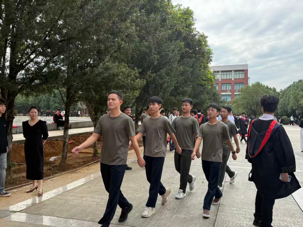 此次任务的成功执行,不仅有效保障了2025届毕业照拍摄活动的顺利进行,更是我院退役学生“退伍不褪色”优良品质的生动实践。他们将军营中锤炼出的组织纪律性和奉献精神带回了校园,用实际行动为母校贡献力量,为自己的大学生涯增添了别样的荣光。