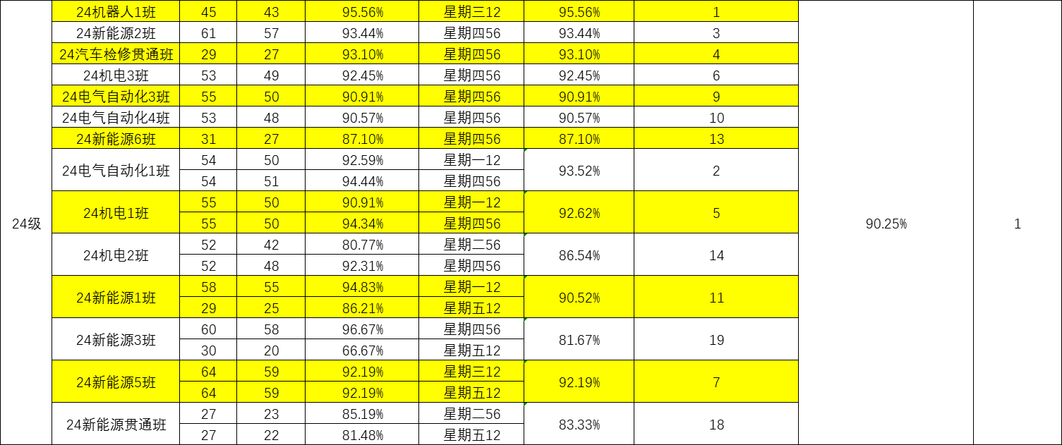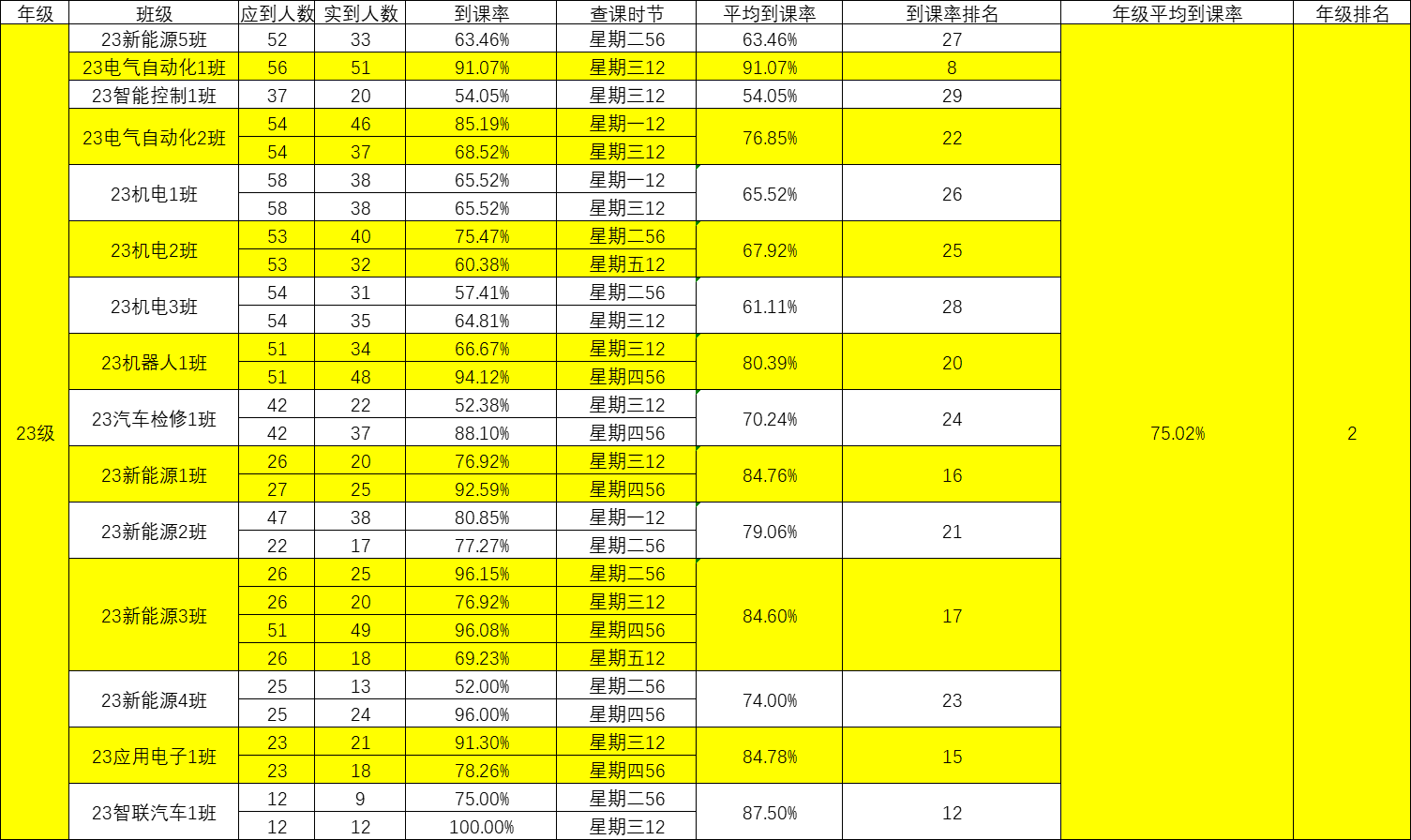 智能制造与汽车学院院团委的工作人员们对我院第十六周的学生课堂情况和学生到课率进行了统计。