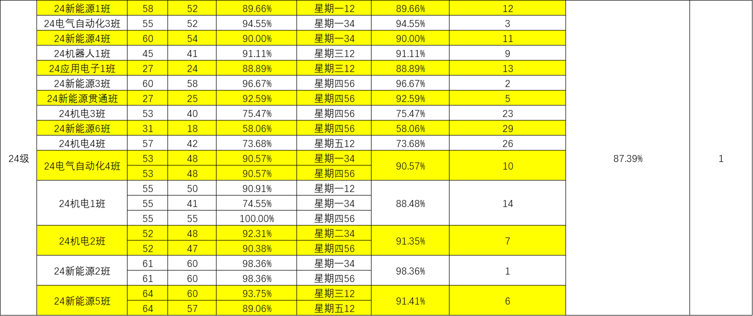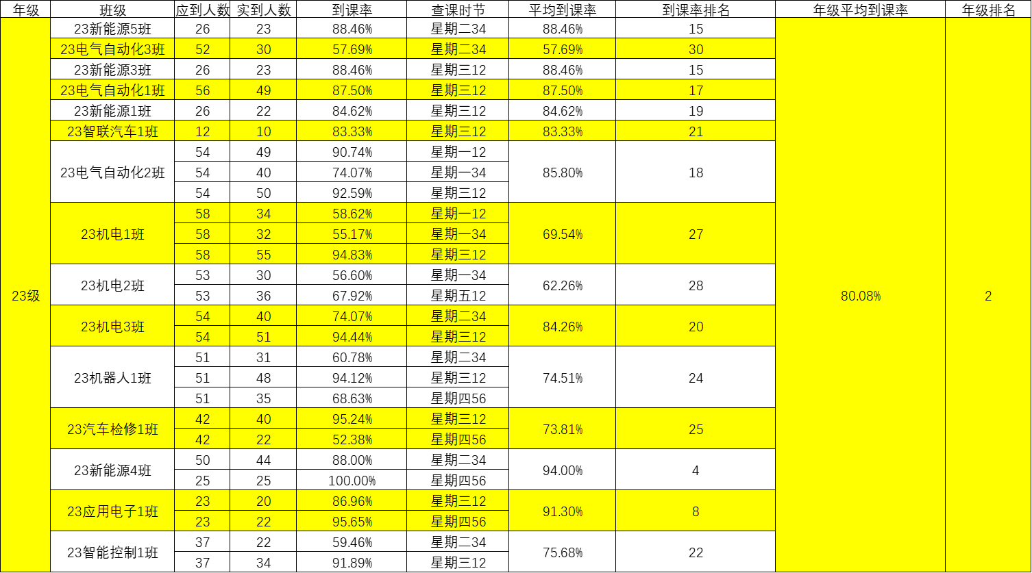 智能制造与汽车学院院团委的工作人员们对我院第十七周的学生课堂情况和学生到课率进行了统计。