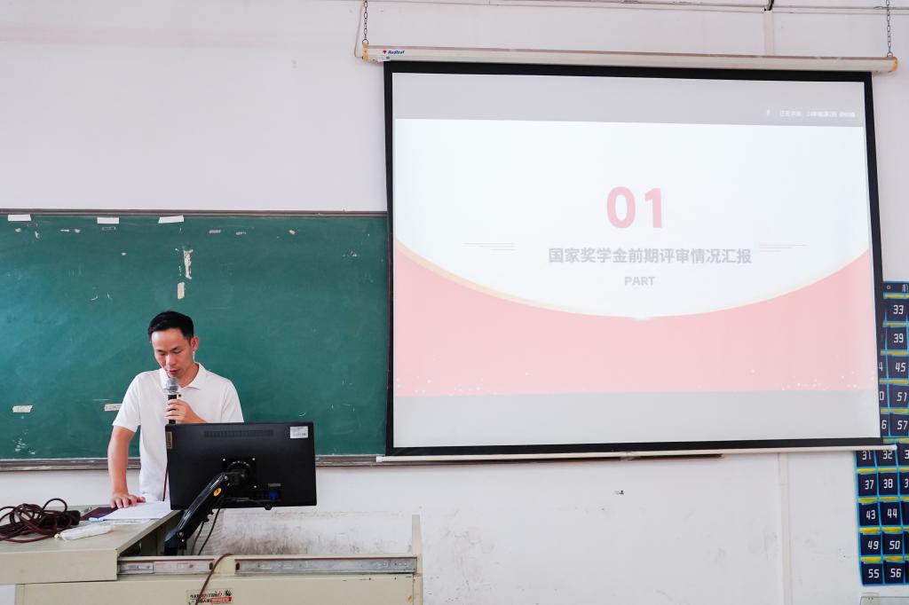 为激励广大学生勤奋学习、努力进取,在德、智、体、美、劳等方面得到全面发展,充分发挥国家奖学金的激励和导向作用,营造崇尚先进、学习先进的良好学风校风,智能制造与汽车学院于2025年9月29日,在博学楼B502开展了2025-2026学年国家奖学金答辩会。
