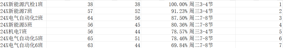 智能制造与汽车技术学院团委办公室工作人员对智能制造与汽车技术学院(江门校区)第五周的学生课堂情况和学生到课率进行了统计。