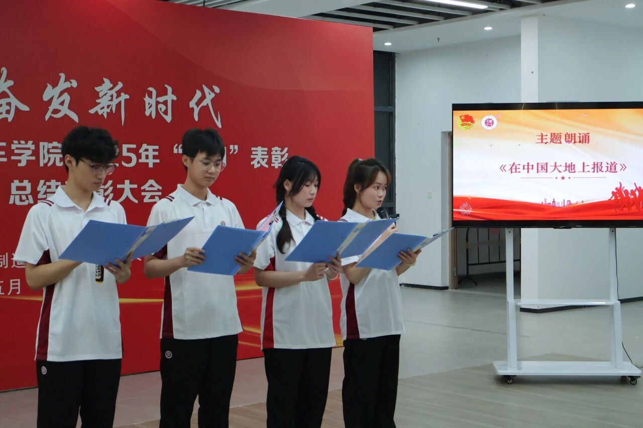 表彰间隙,同学们带来了声情并茂的主题朗诵《在中国大地上报道》,展现了深厚的爱国情怀。
