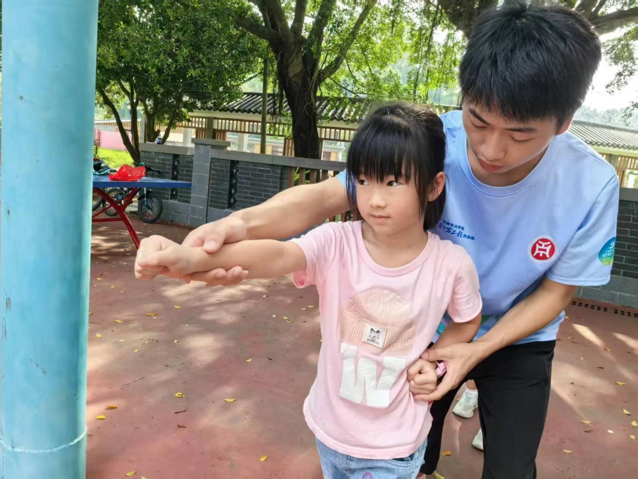 “军体拳不光是强身健体,更能教会孩子勇敢和担当。”实践队退伍兵介绍,这次教学特意选取了基础实用的招式,既考虑到乡村孩子的活动特点,也希望通过肢体训练培养他们的专注力。“就像出拳一样,要用力往前冲!”举起拳头的样子格外坚定,孩子们的或许稚嫩,却透着被点燃的朝气。“同心燃梦”实践队用青春接力,让爱留在麦村村。