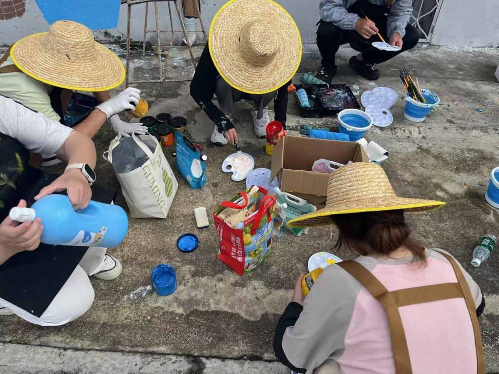 对人物的刻画,队员们格外用心。调出贴近肤色的颜料,仔细描绘人物的面部神情,力求捕捉那份质朴劳作的生动神韵。小笔触在墨线框内跳跃,让静态的画面开始“活”了起来。