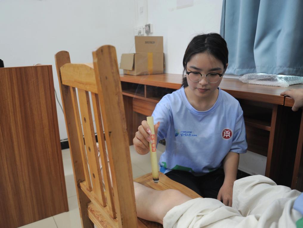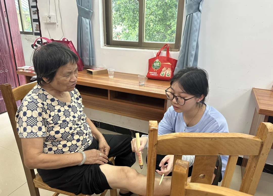 艾灸体验环节,队员为老人施灸,讲解养生知识。传统中医技法在乡村落地,温热的不仅是身体,更是传承与守护的心意,让古老智慧赋能乡村健康生活。