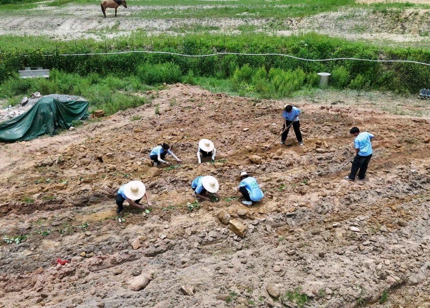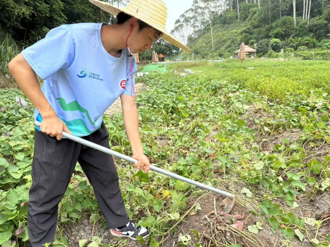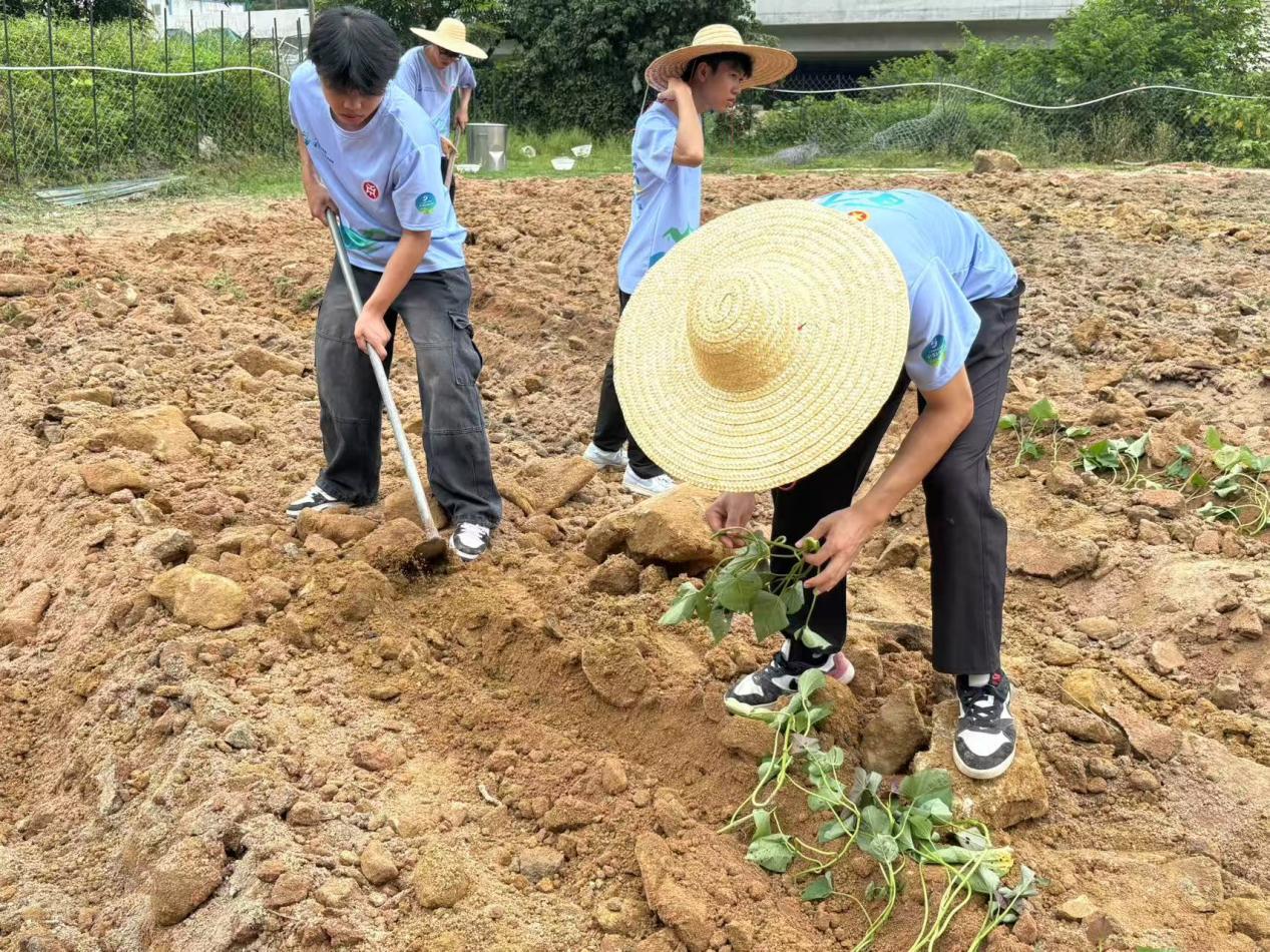 队员们来到天池农场的田间地头,戴草帽、挥锄头,翻土、栽种。汗水滴落泥土,亲身感受“粒粒皆辛苦”,也懂了乡村发展离不开脚踏实地的耕耘。我们以青春汗水,为乡村沃土添新绿。