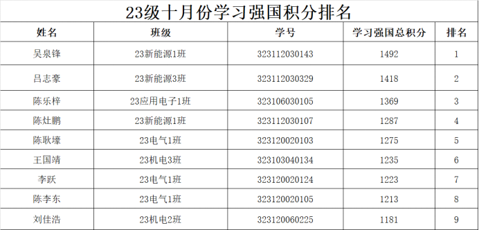 学习正当时,强国有你我——智能制造与汽车学院(广州校区)10月学习强国积分榜单公示