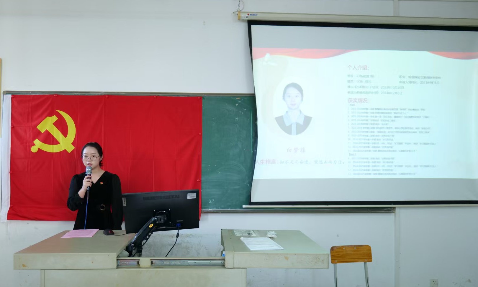 大会第四项议程,预备党员作预备期间思想汇报,提出转正申请,陈灶鹏等6名同志依次上台向大会认真汇报了自己在预备期间的思想、学习、工作等多方面的情况。他们详细汇报了预备期间自身对党的理论知识的深入学习体会,分享了在参与党支部组织活动的收获与感悟。同时,结合自身在学习和生活中的实际表现,反思了存在的不足,并提出了具体的改进方向。汇报结束时,党员满怀真诚地表达了渴望按期转正,成为一名正式党员的强烈愿望,承诺将始终以党员的标准严格要求自己,为党和人民的事业奋斗终身。