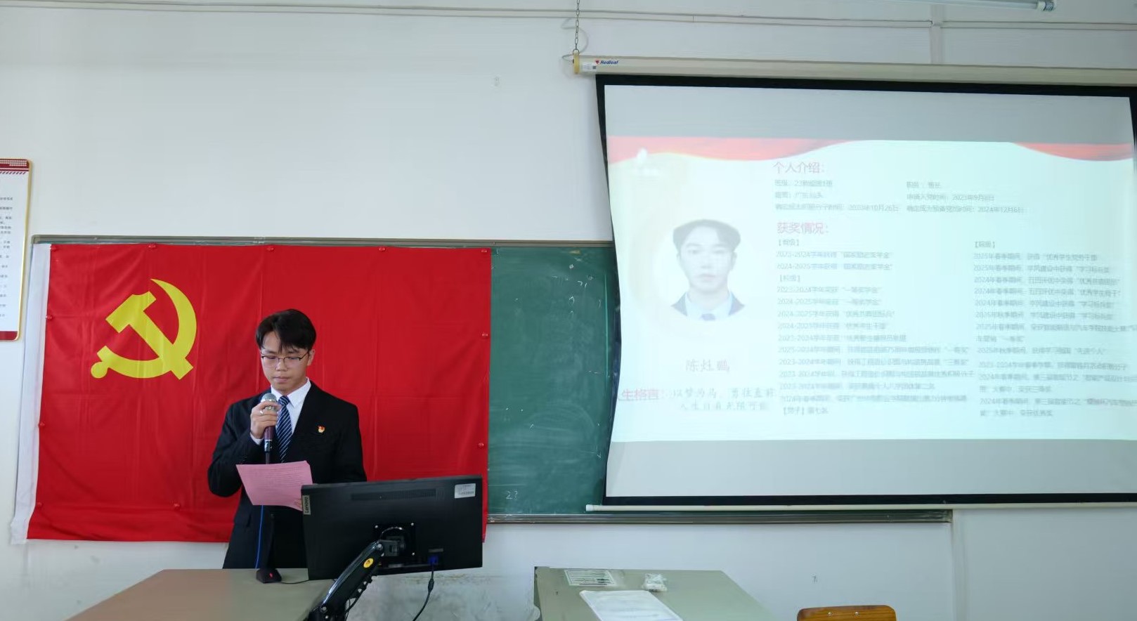 入党介绍人对发展对象的有关情况进行阐述,表明自己的意见及建议。党员老师们介绍陈灶鹏等6名同志在预备期间的表现情况。他们表示,在预备期间陈灶鹏等6名同志学习态度端正,深入学习贯彻党的路线、方针、政策,展现出良好的政治素养,通过学习党的理论知识、研读红色书籍等方式强化政治理论储备。同时,他们在思想、学习、工作等方面以党员标准严格要求自己,主动服务集体,充分发挥示范带头作用。经综合考察,认为陈灶鹏等6名同志已基本具备正式党员条件,并愿意介绍其转为正式党员。