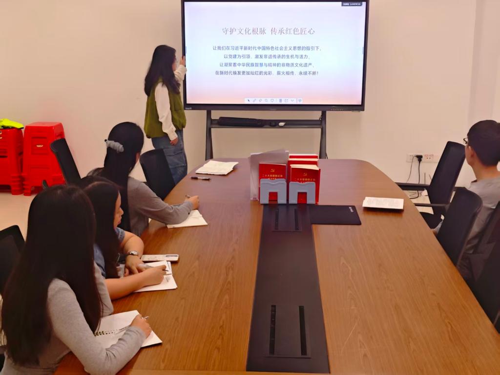 陈雅静书记还结合真实案例,生动展示了党建引领下非遗焕发新活力的实践成果,增强了党员对做好非遗传承保护工作的信心与热情。党课最后,她再次强调,守住文化根脉是全体党员的共同责任,要以高质量党建激发非遗传承的生机与活力。
