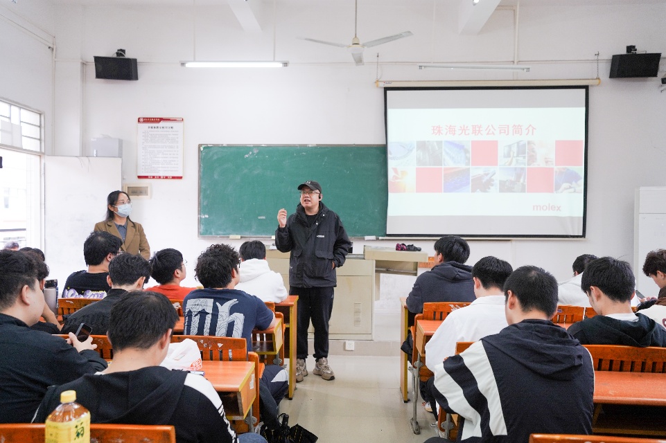 宣讲会伊始,宣讲员向大家介绍了珠海保税区光联通讯技术有限公司是莫仕光学事业部是重要的研发、中试和生产基地,珠海光联拥有6000多名员工,是国家高新技术企业,并设有“国家博士后科研工作分站”,技术实力不言而喻。除了珠海,位于武汉光谷的研发中心也同样瞩目,两地协同,构成了莫仕在中国强大的研发创新网络。